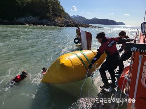 ÇØ°æÀÌ »ç°í ÇöÀå¿¡ µµÂøÇßÀ» ¶© »ç°í ¼±¹Ú AÈ£´Â ħ¸ôµÇ¾î ¼±¼ö¸¸ º¸ÀÌ´Â »óÅ¿´À¸¸ç, °æºñÇÔÁ¤ ¹× ¹Î°£±¸Á¶¼± µîÀÌ ÇÕµ¿À¸·Î ÁÖº¯ ¼ö»ö¿¡ ³ª¼± °á°ú, ¹Î°£±¸Á¶¼± ½ºÇǵåÈ£(9.77Åæ, ³¬½Ã¾î¼±)°¡ ¼ö»ö 30¿© ºÐ¸¸¿¡ Àα٠°¹¹ÙÀ§¿¡¼ »ç°í¼±¹Ú AÈ£ ¼±Àå ±è¸ð(63¼¼)¾¾¸¦ ¹«»çÈ÷ ±¸Á¶Çß½À´Ï´Ù.