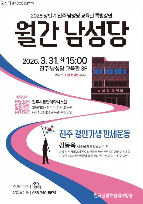 ù °¿¬Àº ¿À´Â 31ÀÏ ¿ÀÈÄ 3½Ã ÁøÁÖ ³²¼º´ç ±³À°°ü¿¡¼ °µ¿¿í ÁøÁÖ¹®È»ç¶û¸ðÀÓ À̻簡 °»ç·Î ³ª¼ ¡®°ÉÀΡ¤±â»ý ¸¸¼¼¿îµ¿¡¯À» ÁÖÁ¦·Î ¿¸°´Ù. ÁøÁֽà ÅëÇÕ¿¹¾à½Ã½ºÅÛÀ» ÅëÇØ ¼±Âø¼ø 30¸í±îÁö ¹«·á·Î Âü¿©ÇÒ ¼ö ÀÖ´Ù.