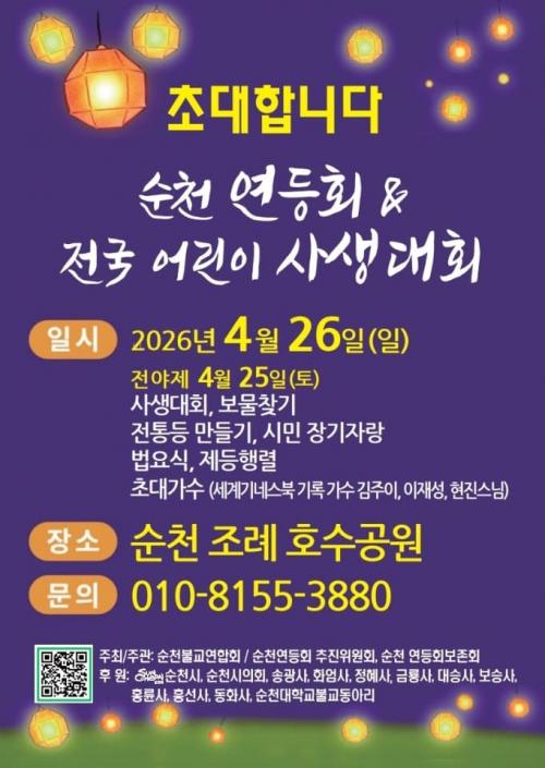 [È£ÅÚ°ü±¤·¹Á®½Å¹® ¼øÃµ=±è¿ëÈÆ ±âÀÚ] ºÒ±â 2570³â ºÎó´Ô ¿À½Å ³¯À» ¸Â¾Æ, ¼øÃµÀÇ ¹ãÀ» ÀÚºñÀÇ µîºÒ·Î ¼ö³õ´Â ¡®2026 ¼øÃµ ¿¬µîȸ¡¯°¡ ¿À´Â 26ÀÏ Á¶·ÊÈ£¼ö°ø¿ø ÀÏ¿ø¿¡¼­ È­·ÁÇÏ°Ô ¸·À» ¿Ã¸°´Ù. ¼øÃµ½Ã¿Í ¼øÃµºÒ±³¿¬ÇÕȸ°¡ ÁÖÃÖ¡¤ÁÖ°üÇÏ´Â À̹ø Çà»ç´Â ÁÖ¸»À» ¸Â¾Æ¡¦