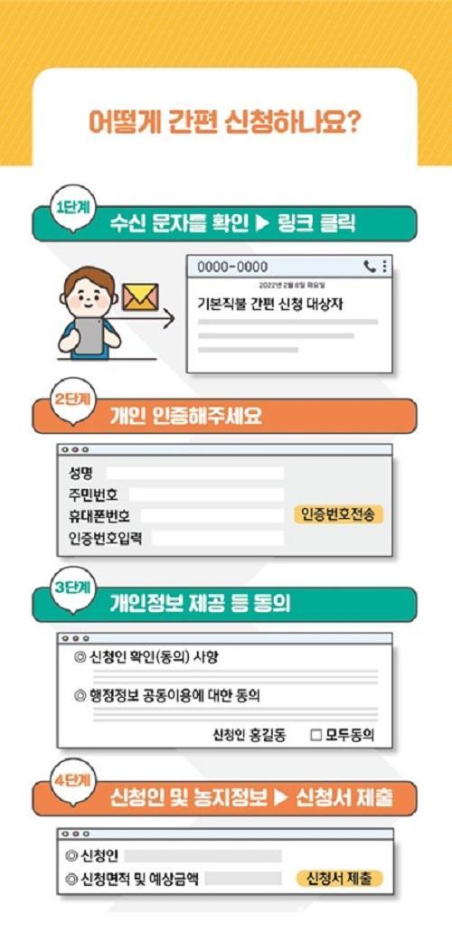 µµ´Â óÀ½ ½ÃÇàµÇ´Â ºñ´ë¸é ½ÅûÀ» ¾ÕµÎ°í ¾ÈÁ¤ÀûÀÎ »ç¾÷ ÁøÇàÀ» À§ÇØ Áö³´Þ ½Ã¹ü»ç¾÷À» ÁøÇàÇßÀ¸¸ç, ½º¸¶Æ®ÆùÀÌ Àͼ÷ÇÏÁö ¾ÊÀº ³ó¾÷ÀεéÀ» À§ÇØ ¿Â¶óÀÎ ½Åû ¹æ¹ý¿¡ °üÇÑ ¾È³» ÀÚ·á(¸®Çø´)¸¦ Á¦ÀÛÇØ ¹èÆ÷ÇÒ ¿¹Á¤À̶ó°í ¹àÇû½À´Ï´Ù.