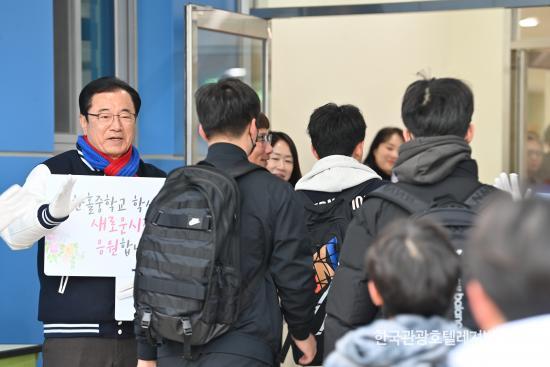À̳¯ Çб³ Á¤¹®¿¡´Â ÀÌÇöÀç ½ÃÀåÀ» ºñ·ÔÇØ ½É»ó¿õ ±¤ÁÖÇϳ²±³À°Áö¿øÃ» ±³À°Àå, Á¶ÀÍ»ó ÇÑȦÁßÇб³ ±³Àå µî °ü°èÀÚµéÀÌ ÇÔ²² ¸ð¿© ÁßÇлýÀ¸·Î¼ ù¹ßÀ» ³»µó´Â ¾ÆÀ̵éÀ» ÀÀ¿øÇÏ´Â ¡®ÀÔÇлý µî±³¸ÂÀÌ È¯¿µ Çà»ç¡¯¸¦ ÁøÇàÇß´Ù.